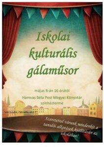 Szeretettel hívjuk és várjuk családjainkat a hagyományos tanév végi Kulturális Gálaműsorunkra! Illetve invitálunk mindenkit, hogy tekintsék meg iskolánk főbejárati folyósóján tanulóink éves alkotásaiból válogatott kiállításunkat. Hisz büszkék vagyunk tanítványainkra!